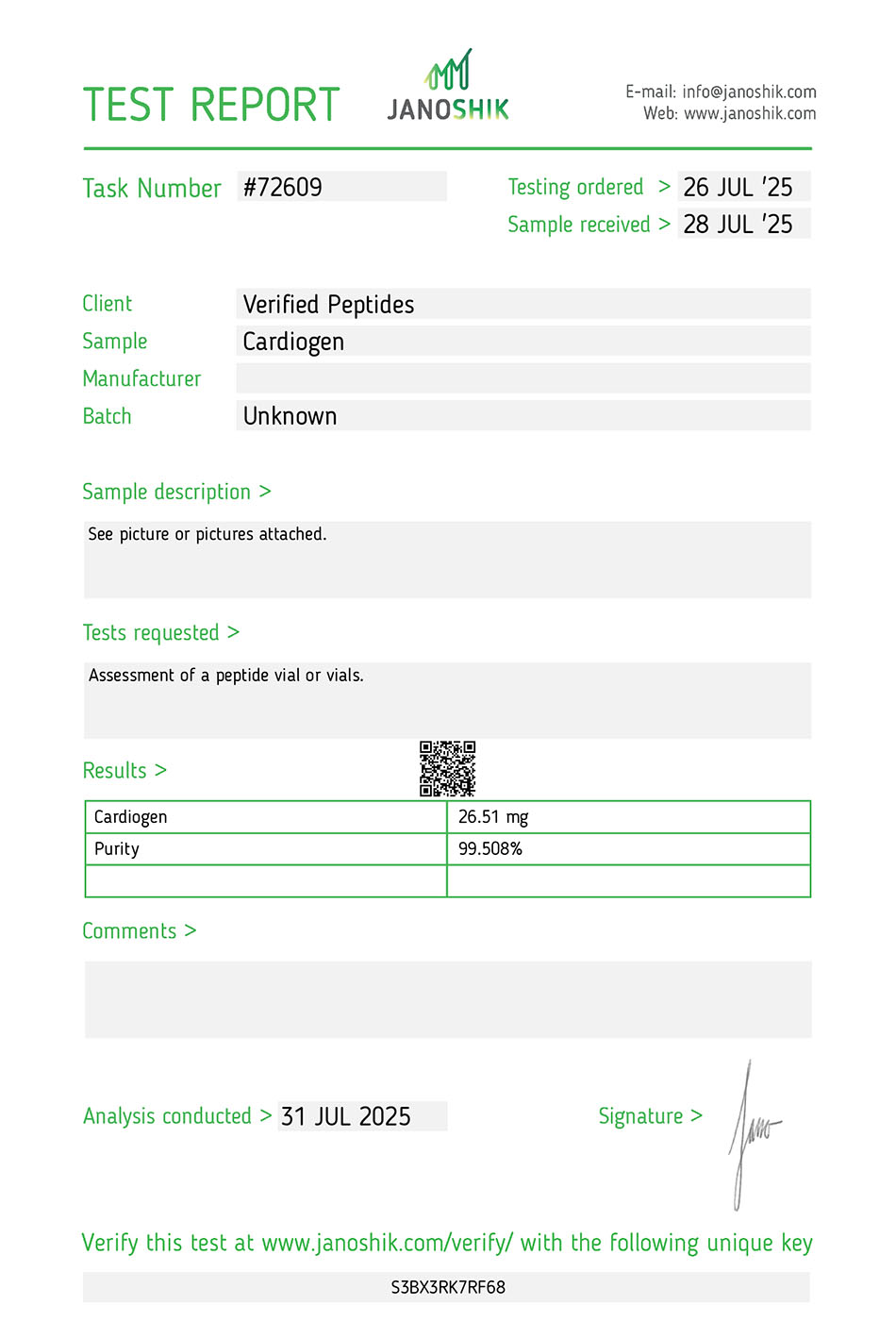 This batch of Cardiogen has been third party lab tested and verified for quality.