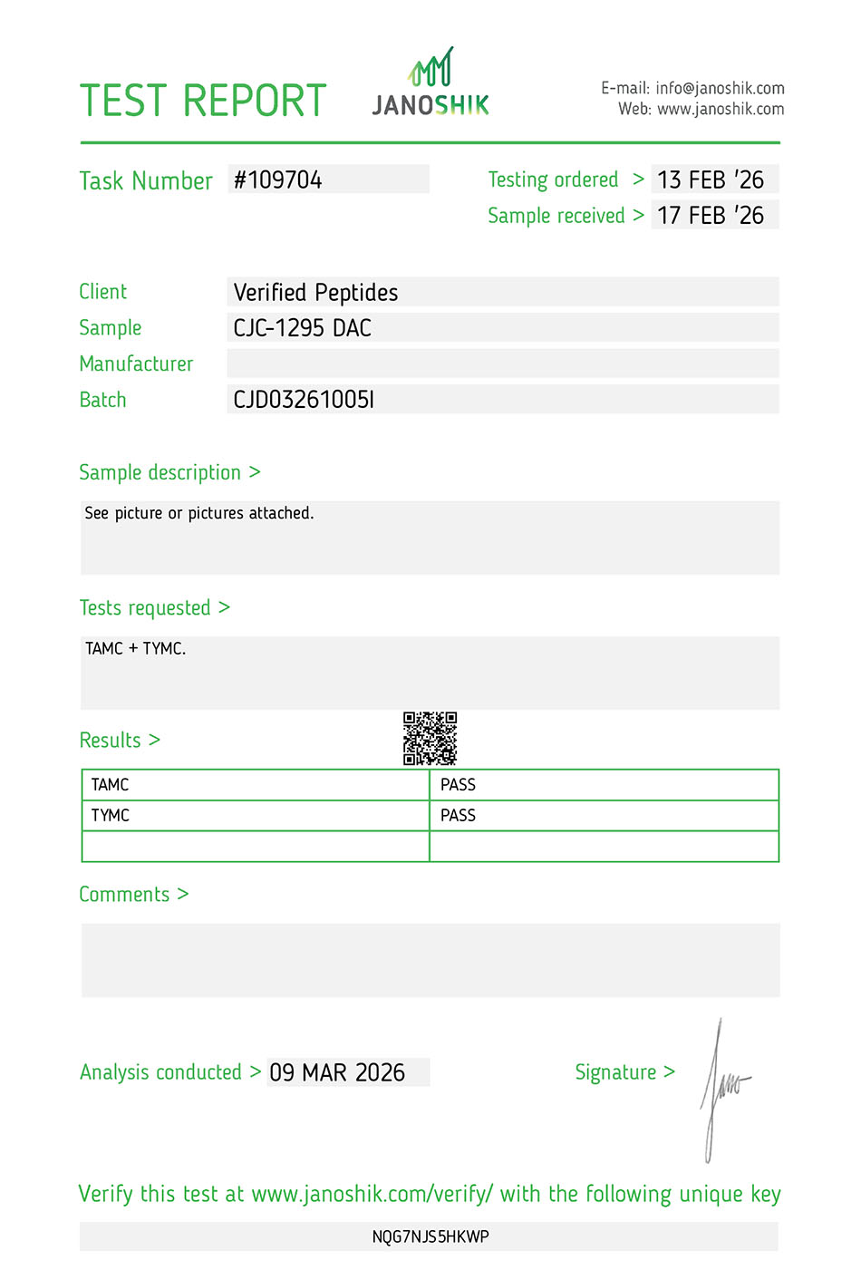 Our peptides are tested by Janoshik analytical testing lab.