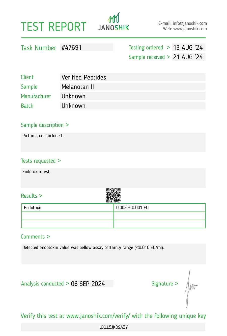 Every batch is analytically verified with HPLC to be up to the highest standards in purity, active weight content, and identity.