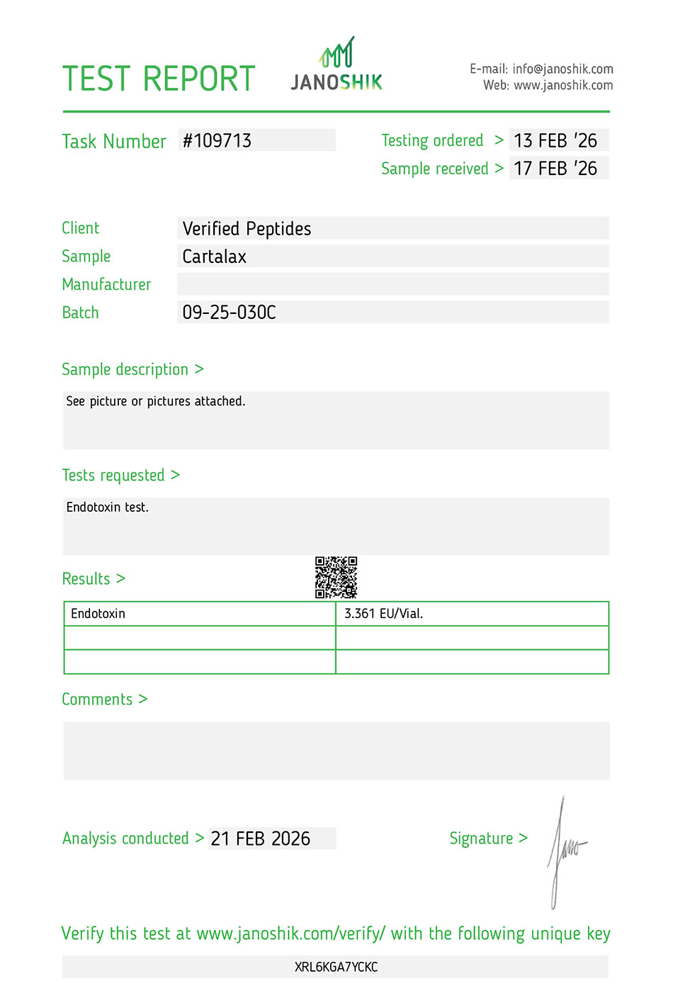 This batch of Cartalax has been third party lab tested and verified for quality.