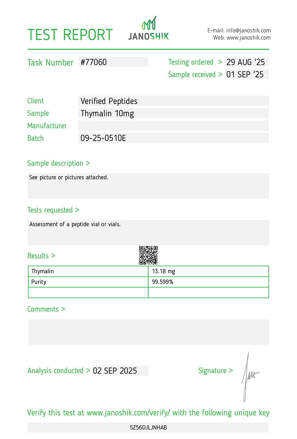 This batch of Epitalon and Thymalin has been third party lab tested and verified for quality.