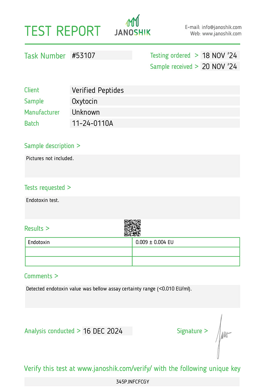 This batch of Oxytocin has been third party lab tested and verified for quality.