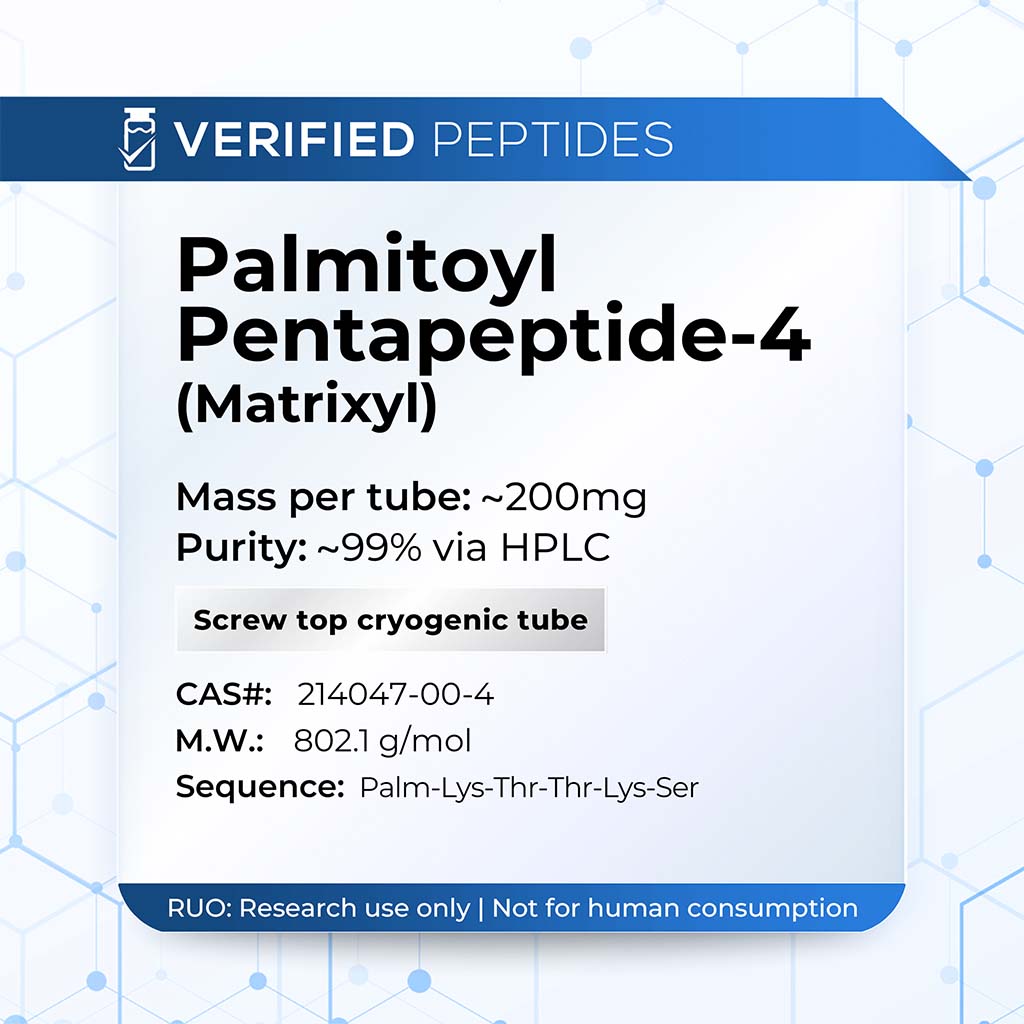 This batch of Palmitoyl Pentapeptide-4 Powder has been third party lab tested and verified for quality.