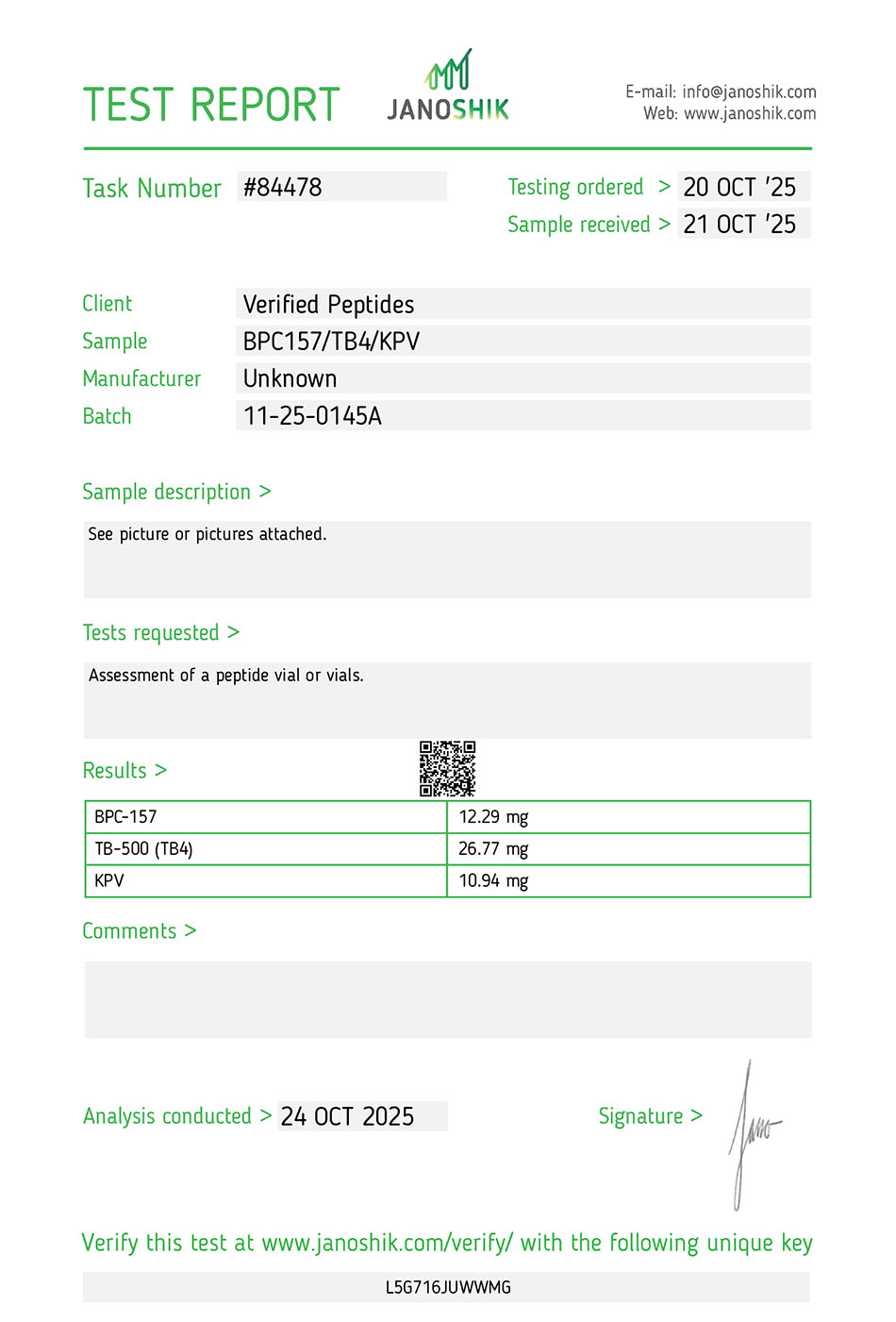 TB500 BPC157 KPV Peptide Test results | ||
